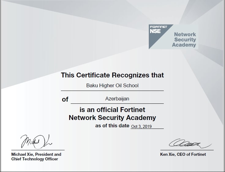The specialization Information Security of Process Automation Engineering Department of Baku Higher Oil School (BHOS) has achieved yet another success by becoming a member of the world-famous Fortinet Network Security Academy (FNSA).