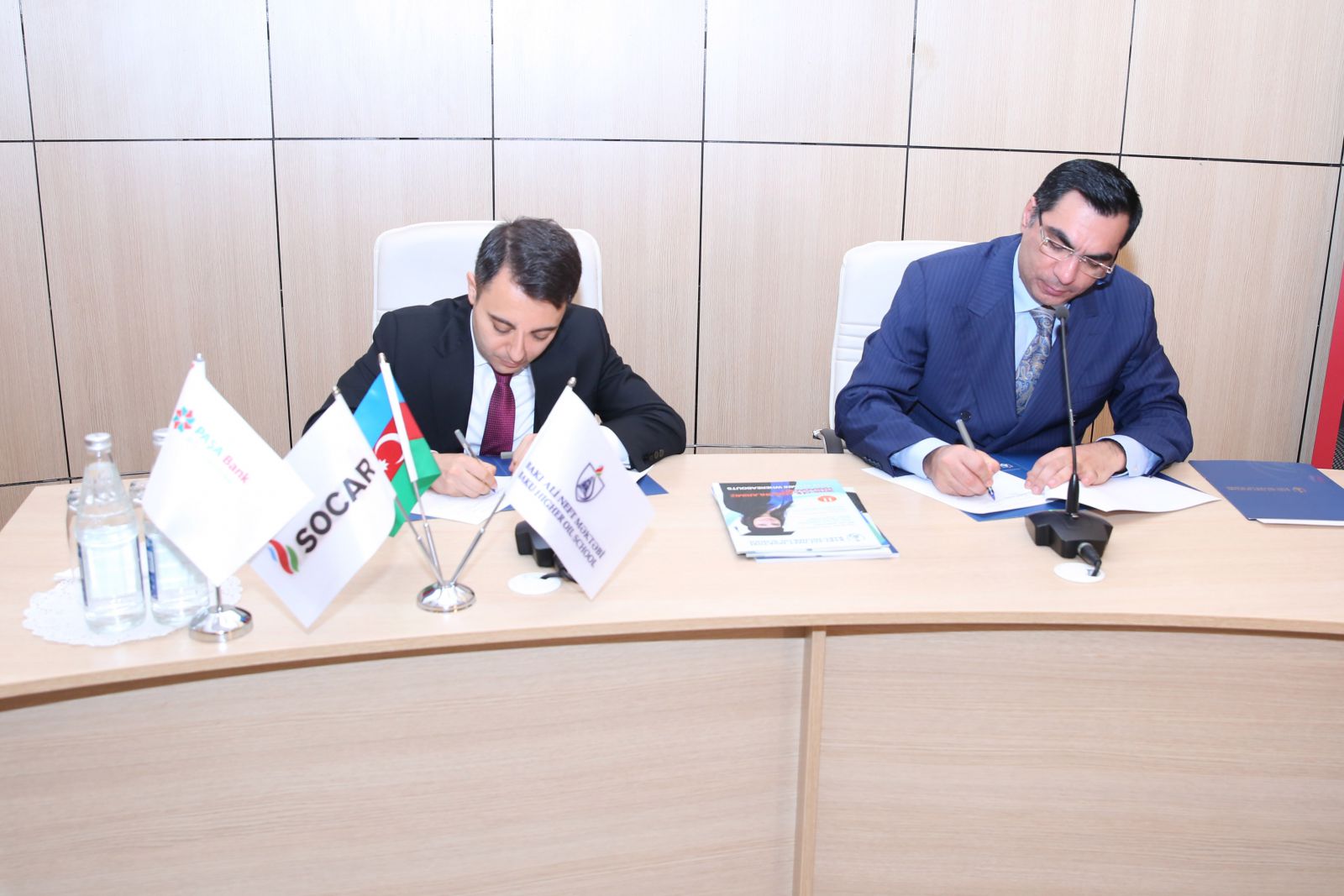 The document was signed by Rector of Baku Higher Oil School Elmar Gasimov and Executive Board Member, Chief Operating Officer of PASHA Bank Jalal Orujov.