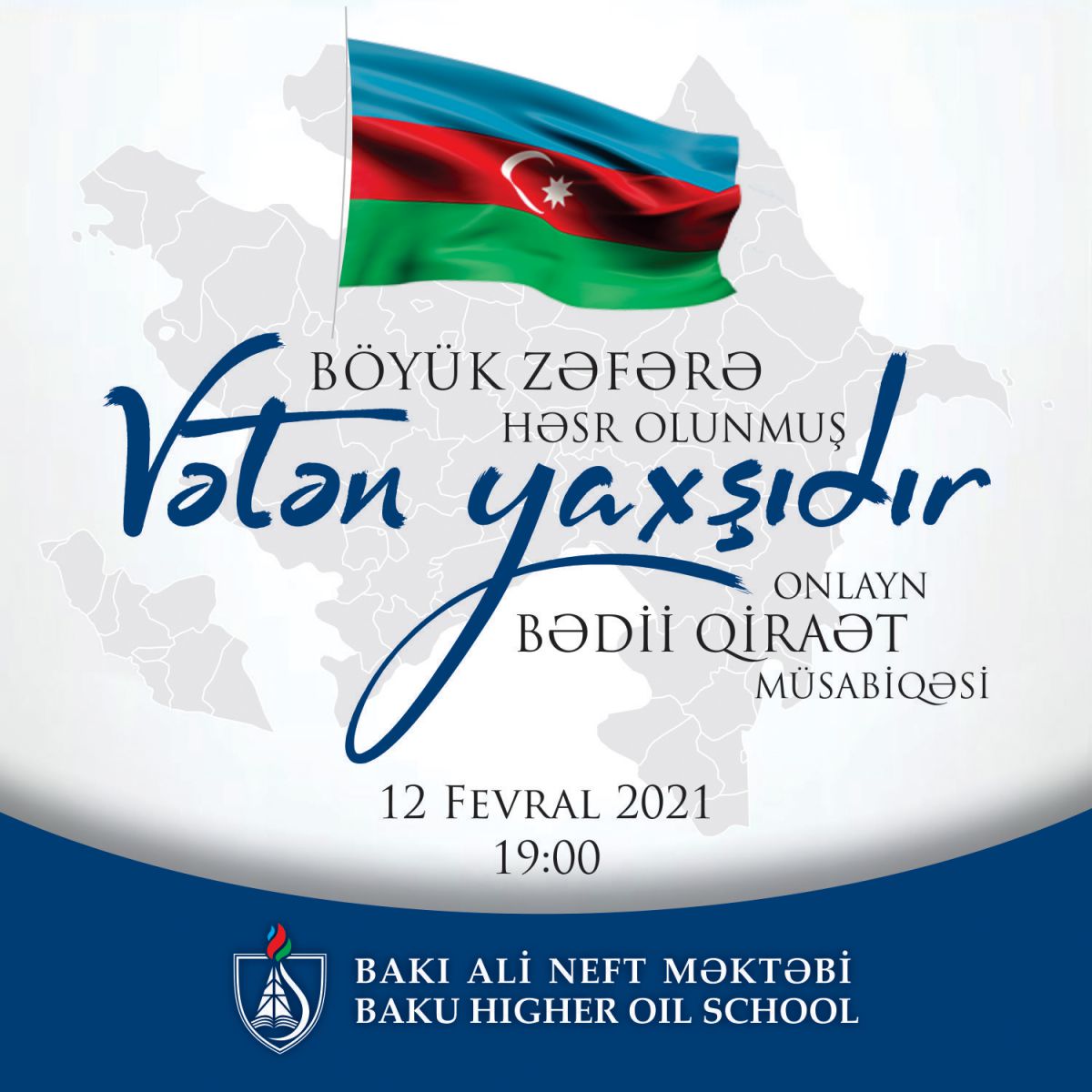 On February 12, 2021, at 19:00, Baku Higher Oil School (BHOS) will host the online art reading competition “The Homeland is Good”, dedicated to the Great Victory.