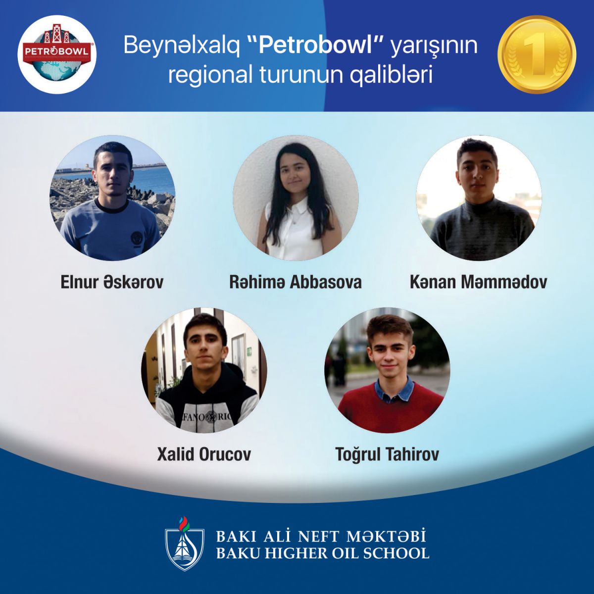 The team “SPE BHOS” of Baku Higher Oil School (BHOS) has won the regional round of the International Competition Petrobowl organized by the International Society of Petroleum Engineers (SPE).