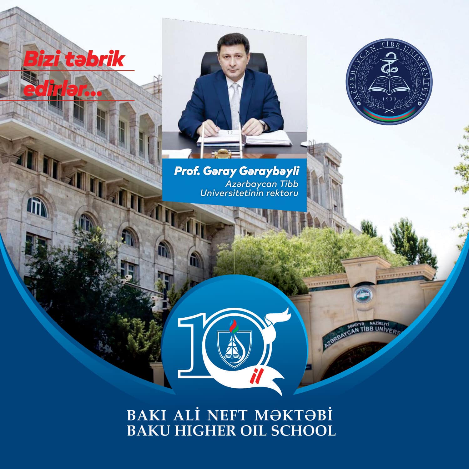 We have received a congratulatory letter from Rector of Azerbaijan Medical University, Prof. Garay Garaybeyli, which he wrote on the occasion of the 10th anniversary of the establishment of Baku Higher Oil School. We thank Mr. Garay Garaybeyli for the congratulations.