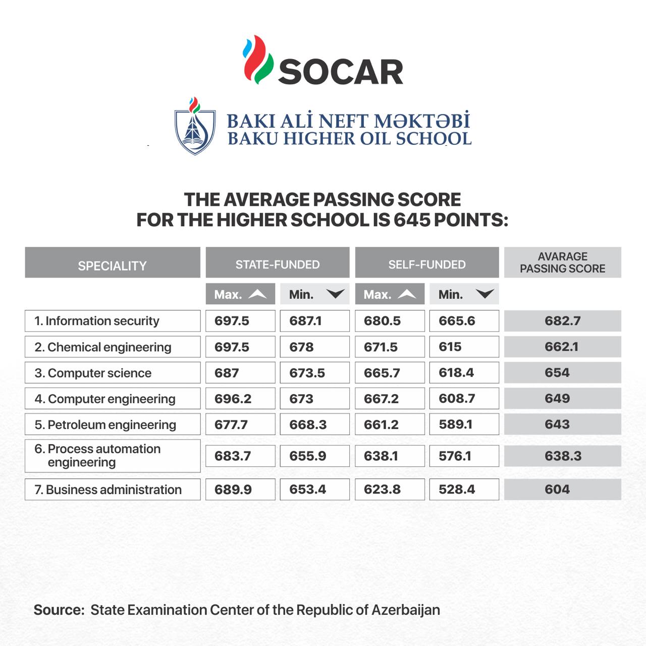 Admission results of SOCAR's Baku Higher Oil School (BHOS):