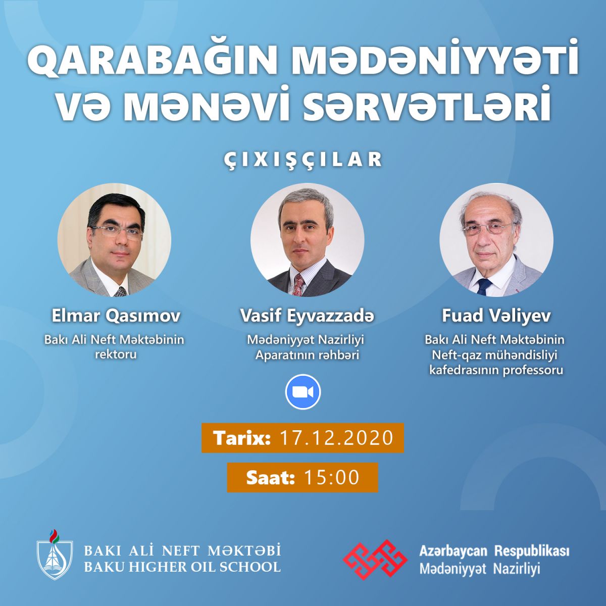 Bakı Ali Neft Məktəbində "Qarabağın mədəniyyəti və mənəvi sərvətləri" mövzusunda vebinar keçiriləcək.