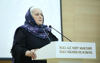 Tədbiri giriş sözü ilə açan Bakı Ali Neft Məktəbinin rektoru Elmar Qasımov  Azərbaycan Prezidenti, Ali Baş Komandan İlham Əliyevin rəhbərliyi ilə rəşadətli Azərbaycan Ordusunun sentyabrın 27-də başlanan və 30 illik işğala son qoyan 44 günlük Vətən müharibəsindəki şücaətindən, qəhrəmanlığından, Azərbaycan xalqının birliyindən danışaraq, böyük tarixi hadisələr yaşadığımızı vurğulayıb. Torpaqlarımızın azadlığı uğrunda canından keçən şəhidlərin ruhuna ehtiramını bildirən rektor tələbələrə müraciət edərək Azərbaycanın intellektual əsgərləri kimi hər zaman və hər yerdə ölkəmizi layiqincə təmsil etməyi, şəhidlərimizi ehtiramla yad etməyi, tariximizi unutmamağı və təbliğ etməyi tövsiyə edib: “Zəfəri bizə Ali Baş Komandan cənab İlham Əliyevin rəhbərliyi ilə Azərbaycan Ordusu, canını fəda edən şəhidlərimiz, qazilərimiz bəxş edib. Bu günü 30 ilə yaxın müddətdə həsrətlə gözlədik, nəhayət, qəhrəman anaların dünyaya gətirdiyi igid oğullar sayəsində böyük Zəfəri yaşadıq. O anaların əllərindən öpürəm. Bizim müqəddəs yerimiz şəhidlərimizin məzarlarıdır. İşğal altında olan torpaqlarımızın azad olunması, qələbə qazanmağımız bizə böyük ruh, əminlik verdi. Bu zəfər qəhrəmanlıq salnaməmizdir. Biz tələbələrimizə beynəlxalq səviyyəli təhsil verməklə yanaşı, onları vətənpərvərlik ruhunda yetişdiririk. Fəxr edirik ki, bizim tələbələrimiz, məzunlarımız arasında da Vətən müharibəsində iştirak edən, qəhrəmanlıq göstərərək medalla təltif edilən igid oğullarımız var”.