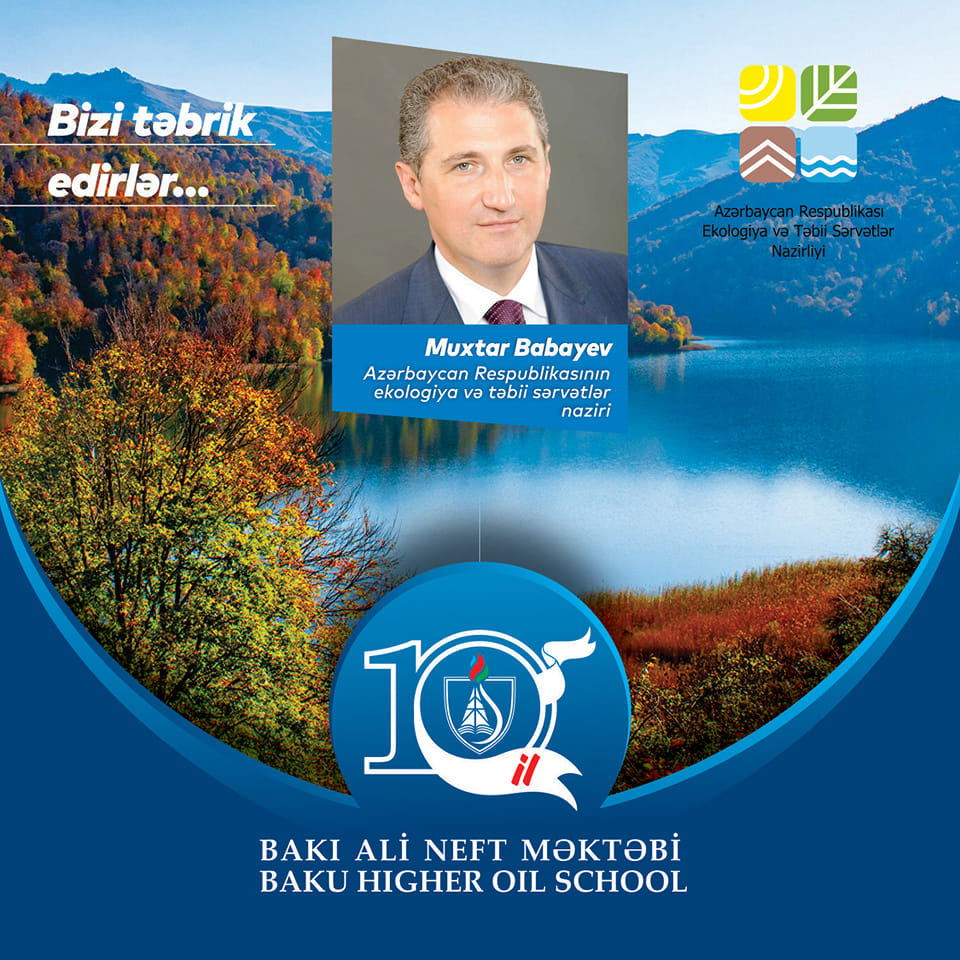 Azərbaycan Respublikasının ekologiya və təbii sərvətlər naziri Muxtar Babayev Bakı Ali Neft Məktəbinin 10 illik yubileyi münasibətilə təbrik edib.
