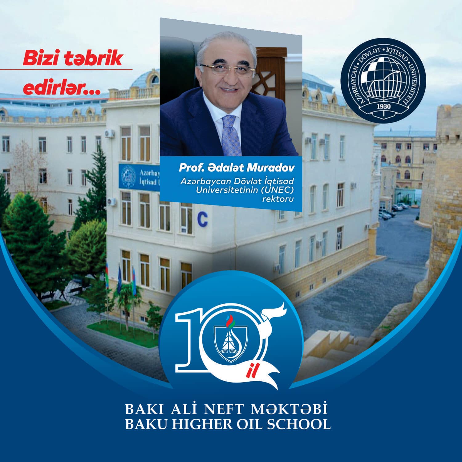 Bakı Ali Neft Məktəbinin (BANM) 10 illik yubileyi münasibətilə Azərbaycan Dövlət İqtisad Universitetinin (UNEC) rektoru, professor Ədalət Muradov təbrik məktubu göndərib.Təbrikə görə hörmətli rektora təşəkkür edirik.