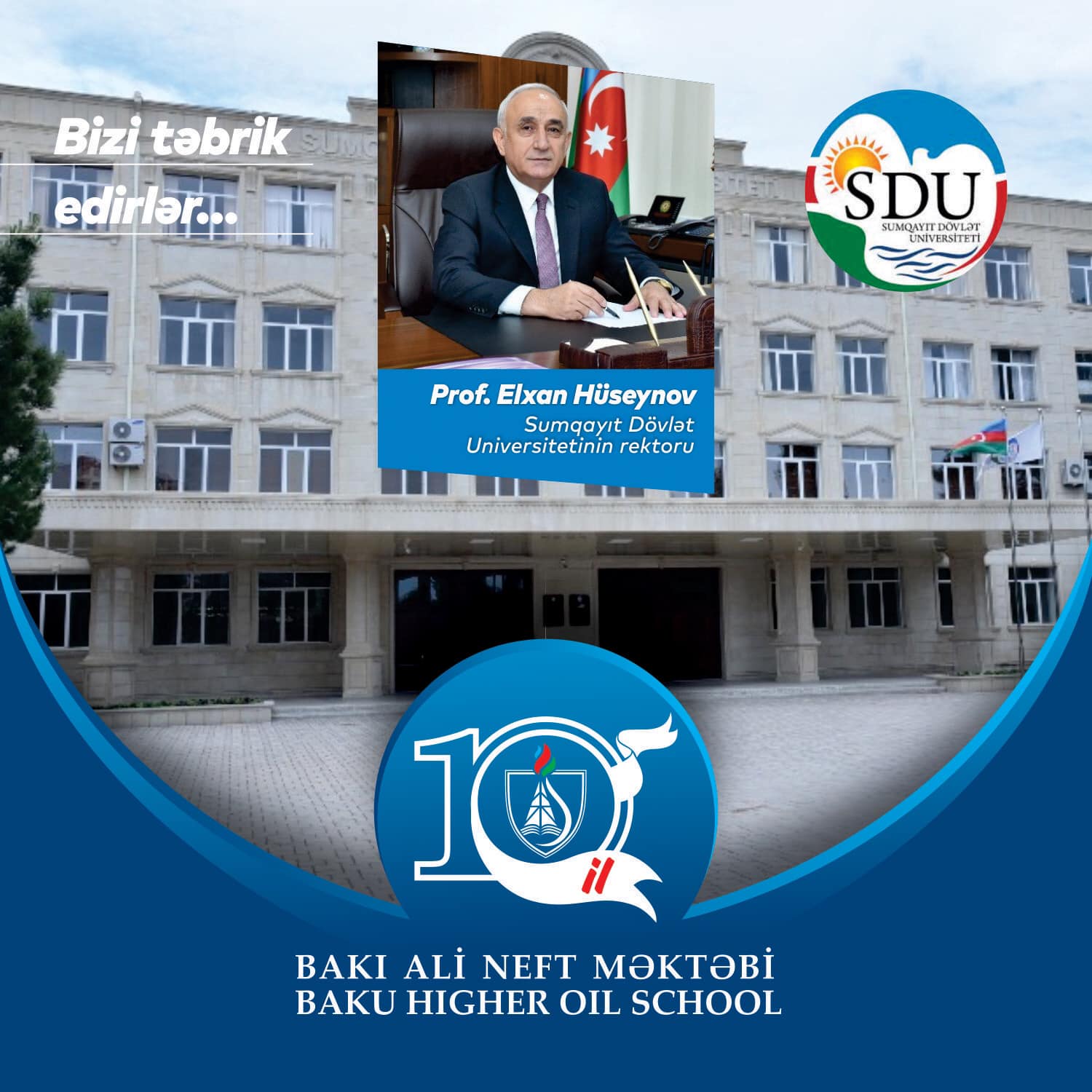 Bakı Ali Neft Məktəbinin (BANM) 10 illik yubileyi münasibətilə Sumqayıt Dövlət Universitetinin rektoru, professor Elxan Hüseynov təbrik məktubu göndərib. Təbrikə görə hörmətli rektora təşəkkür edirik.