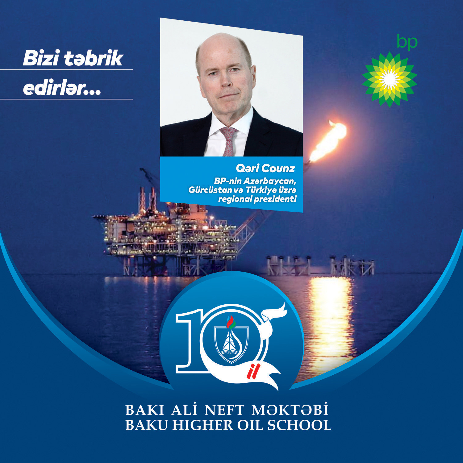 Bakı Ali Neft Məktəbinin (BANM) 10 illik yubileyi münasibətilə BP-nin Azərbaycan, Gürcüstan və Türkiyə üzrə regional prezidenti Qəri Counz təbrik məktubu göndərib.Təbrikə görə hörmətli Qəri Counza təşəkkür edirik.