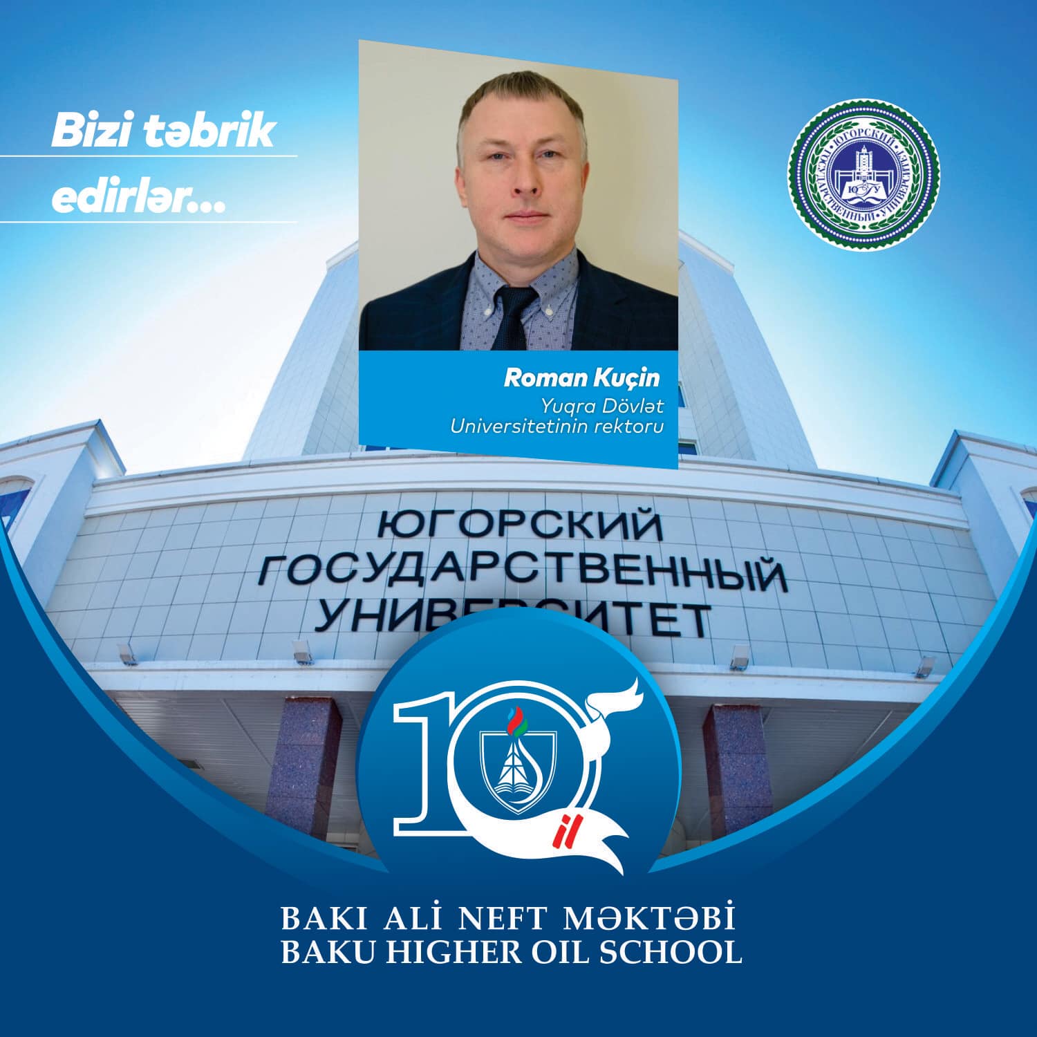 Bakı Ali Neft Məktəbinin (BANM) 10 illik yubileyi münasibətilə Rusiyanın Yuqra Dövlət Universitetinin rektoru Roman Kuçin təbrik məktubu göndərib.Təbrikə görə hörmətli rektora təşəkkür edirik.