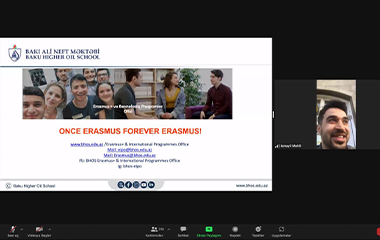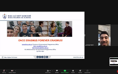 Bakı Ali Neft Məktəbinin (BANM) Erasmus+ və Beynəlxalq Proqramlar Ofisi tərəfindən “Erasmus+İnfo Day” adlı vebinar təşkil edilib. I, II və III kurs tələbələrinin qatıldığı onlayn görüşdə BANM-in 312 tələbəsi iştirak edib.