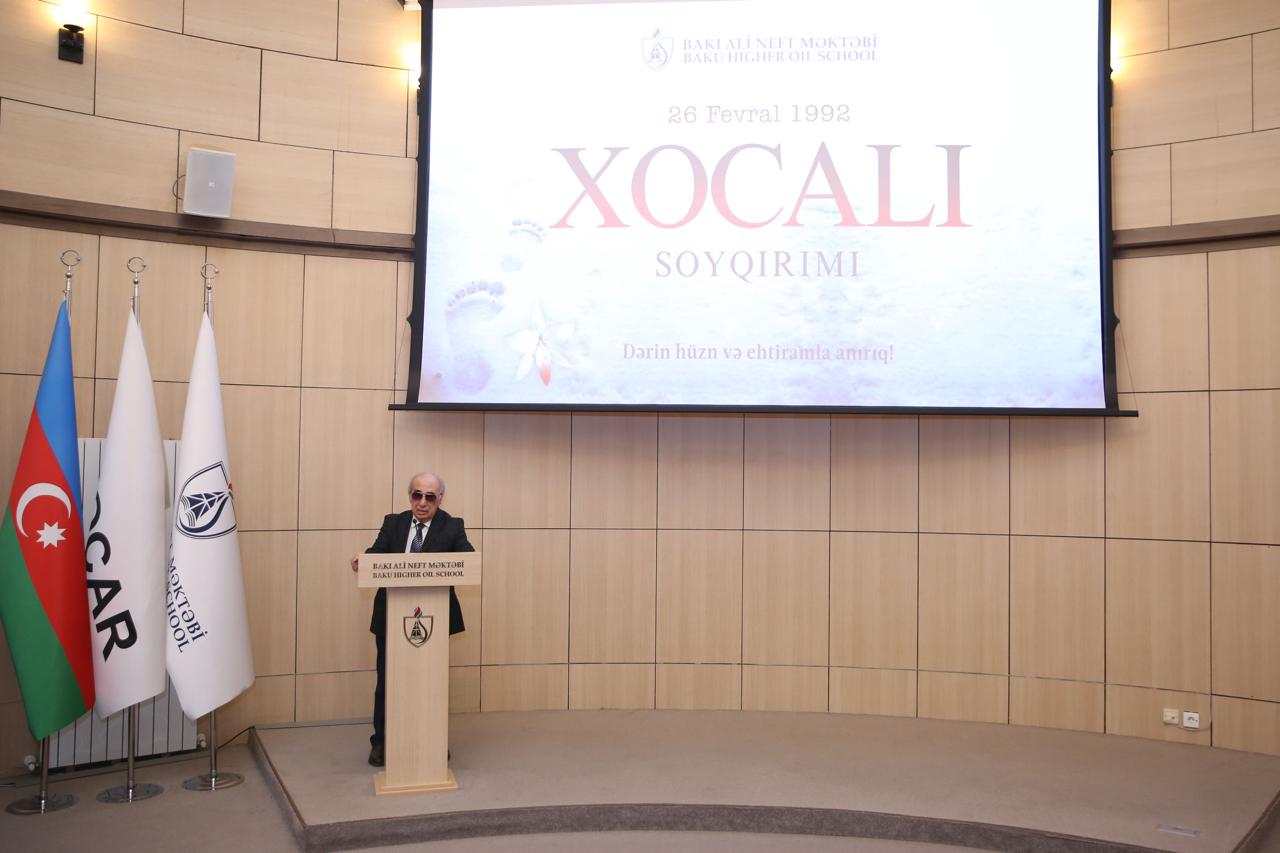 Bakı Ali Neft Məktəbinin professoru Fuad Vəliyev XX əsrin sonlarında dinc əhaliyə qarşı törədilmiş ən ağır cinayətlərdən biri olan Xocalı soyqırımı barədə danışıb, gəncləri bu qanlı tarixi unutmamağa çağırıb.
