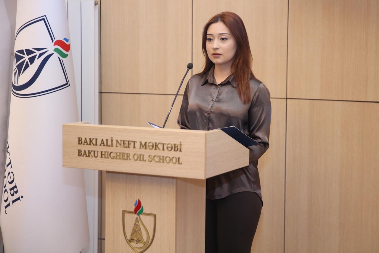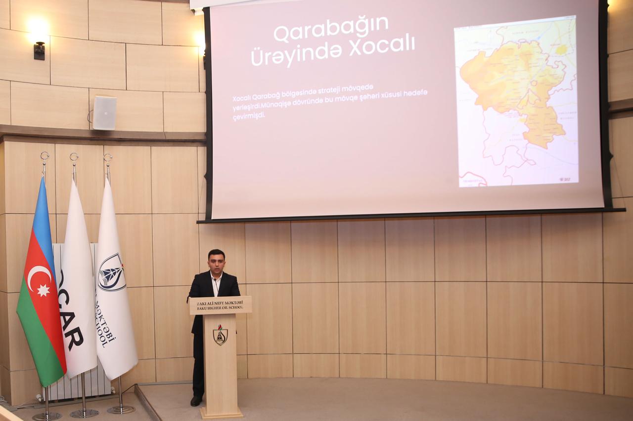 Daha sonra Biznesin idarə edilməsi ixtisasının 2-ci kurs tələbəsi, BANM Tarix Klubunun üzvü Xaliq Abbasov Xocalı soyqırımı haqqında təqdimatla çıxış edib.