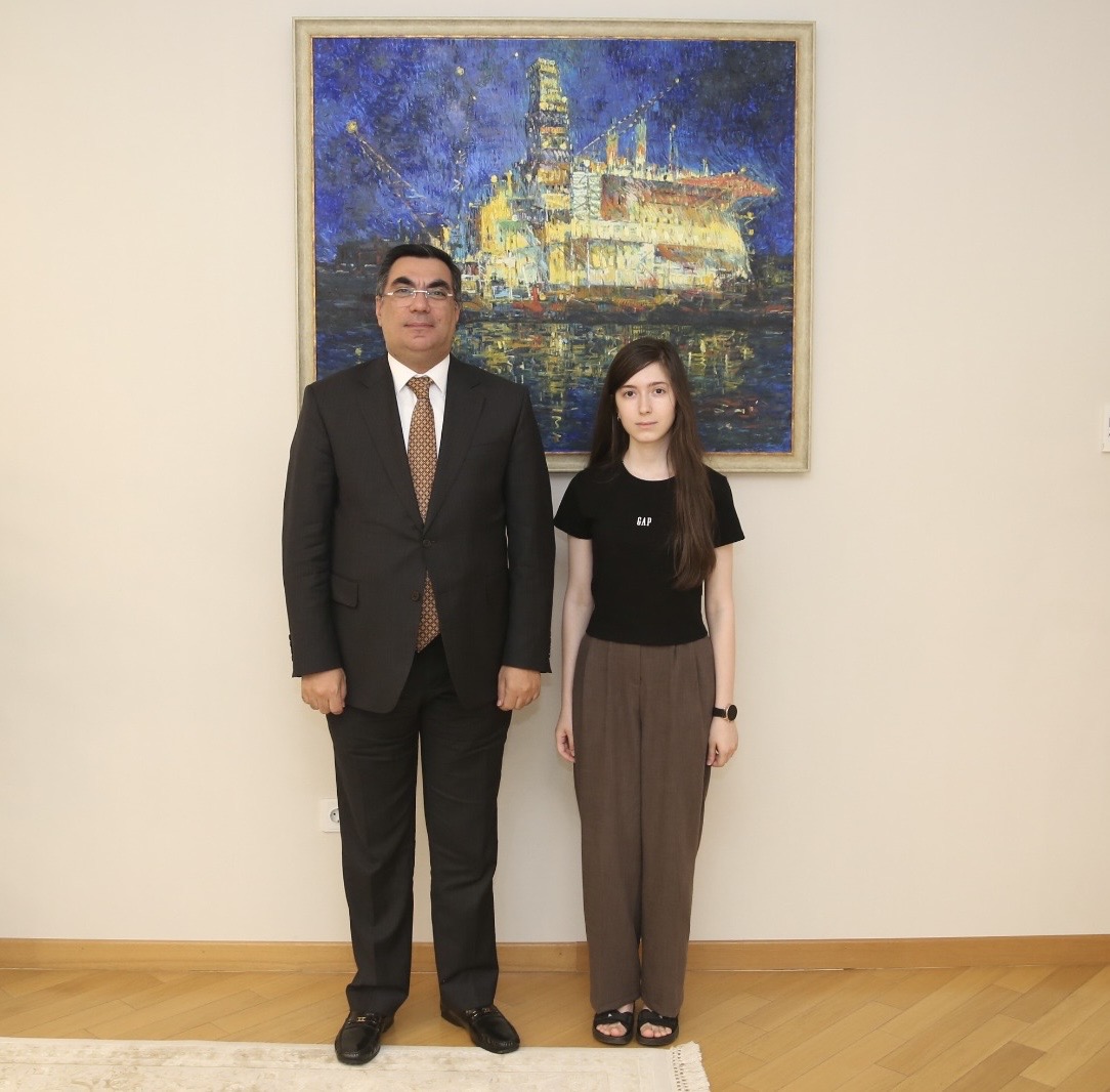 BANM-ın rektoru Elmar Qasımovla görüşdə Maliyyə ixtisası üzrə təhsil almaq istədiyini bildirib. Rektor bu seçimdən məmnunluğunu ifadə edərək Xədicəyə təhsil həyatında uğurlar arzulayıb.