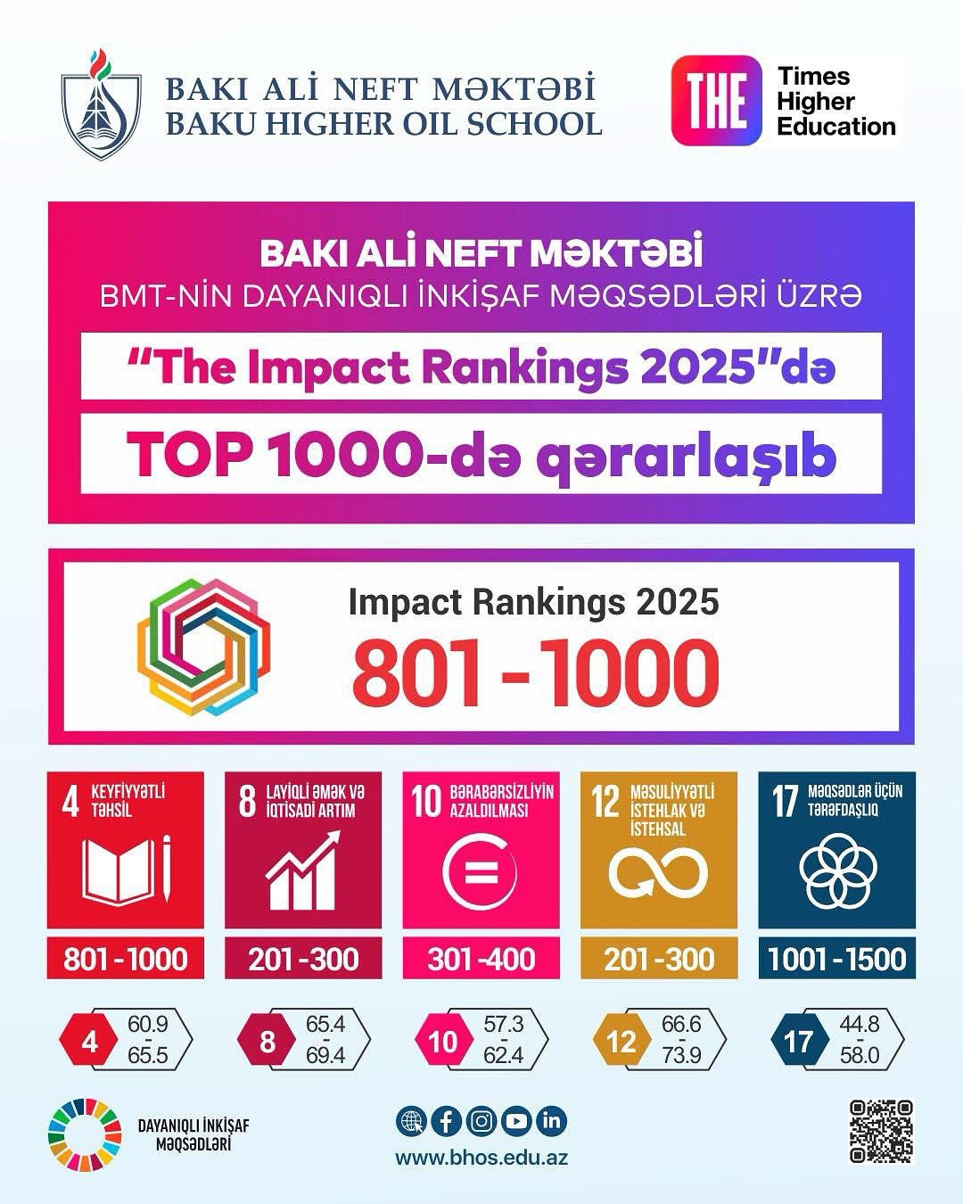 “THE Impact Rankings” ali təhsil müəssisələrinin BMT-nin Dayanıqlı İnkişaf Məqsədlərinə (Sustainable Development Goals – SDGs) uyğun fəaliyyətlərini qiymətləndirən nüfuzlu beynəlxalq reytinq sistemidir.