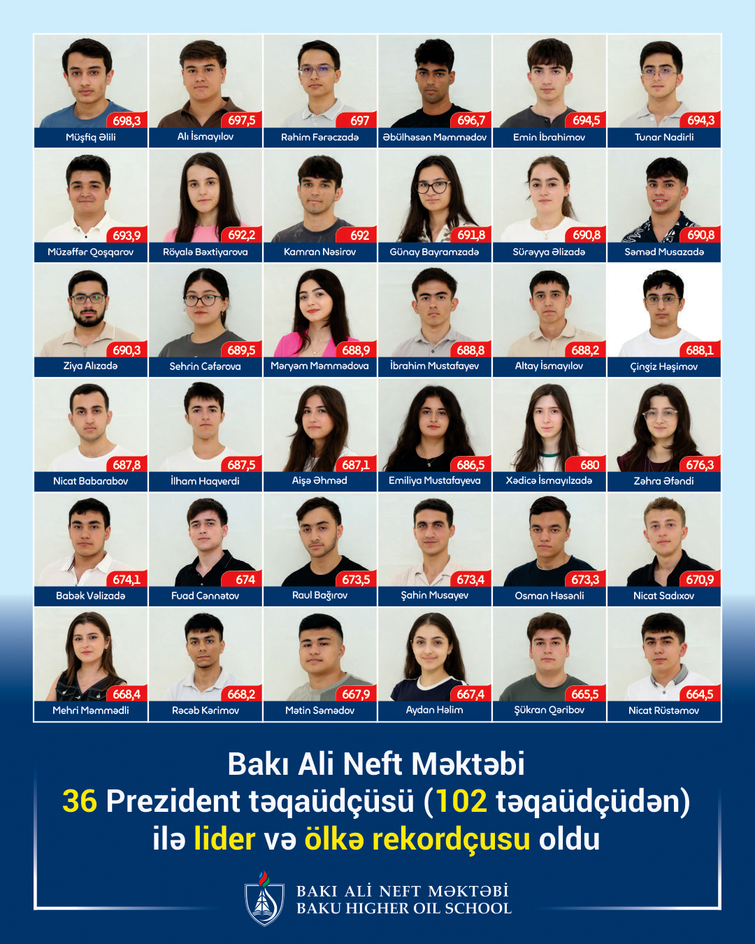 Baku Higher Oil School leads the country in the number of Presidential Scholars (36)